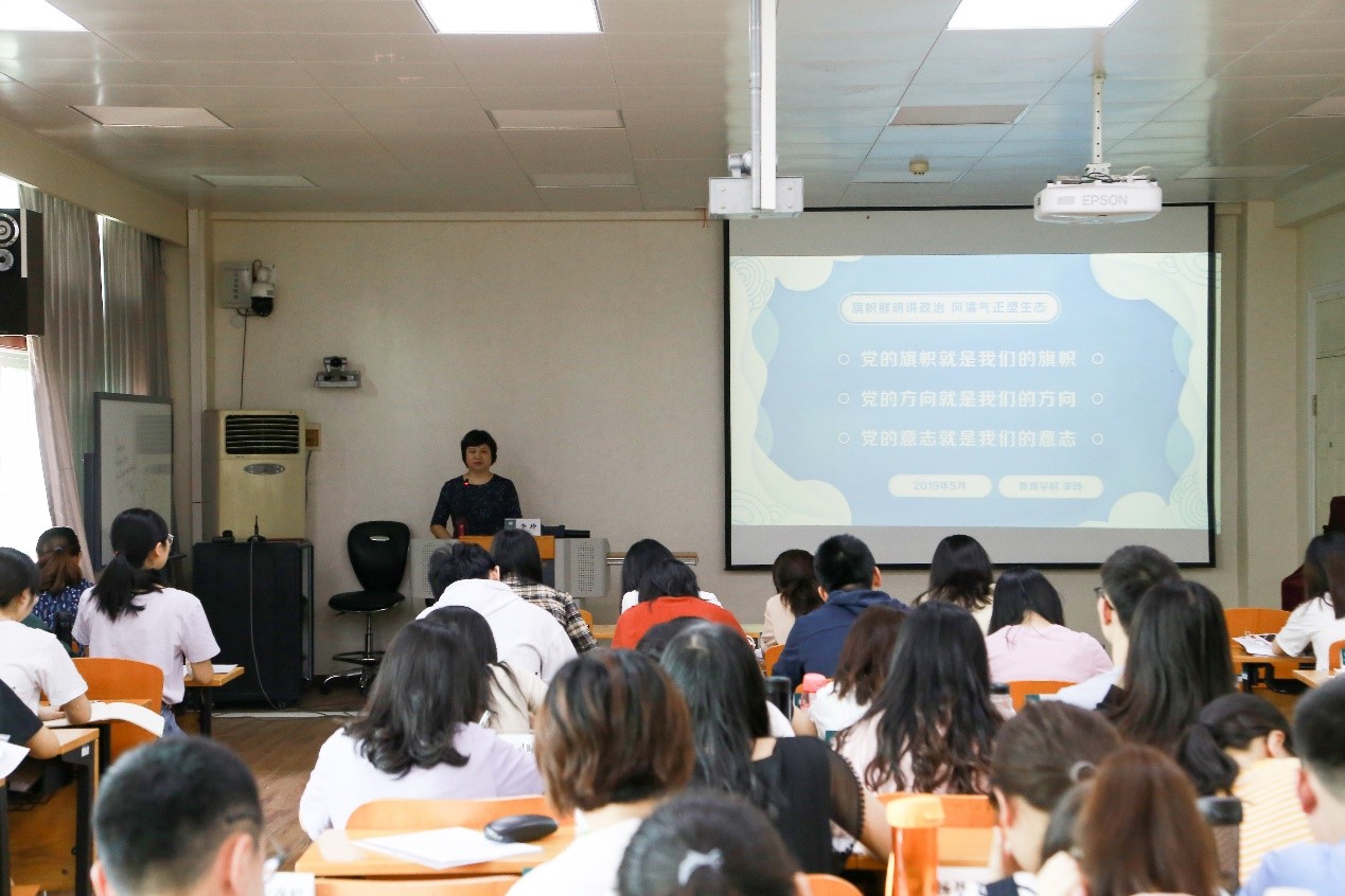 教育学院宣传中心讯(通讯员:郑怡岑 摄影:袁腾飞 编辑:陈棋)2019年5月11日,由教育学院、心理学院、国家数字化学习工程技术研究中心联合举办的党员发展对象培训班于田家炳502教室正式开课。培训班第一次课程邀请到教育学院党委书记李玲进行主题为“旗帜鲜明讲政治,风清气正塑生态”的授课。
