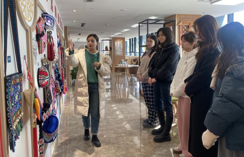 支部成员在华中师范大学学工部民族团结教育办公室职员热米拉的带领下参观华大民族团结进步之家,包括民族团结进步教育展厅与各民族手工、服饰、书法等陈列展品,支部成员深刻了解了民族团结工作的开展状况,深切感受到了学校对各民族学生的关注、关心与关爱。