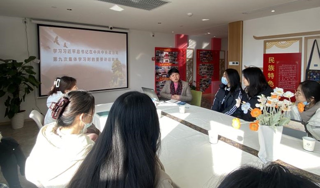 吴建成领学学习习近平总书记在中共中央政治局第九次集体学习时重要讲话精神,深刻解读铸牢中华民族共同体意识的讲话精神。与会师生交流热烈,纷纷表示日后将爱护同学,团结同学,为促进各民族师生交流交往贡献自己的力量。仁青娜么同志谈到,作为一名藏族学生,在本次的学习中深刻感受到了学校对于各民族同学的关心与爱护,并表示在往后的学习生活中会积极实践,为民族团结之花绽放贡献自己的青春力量。