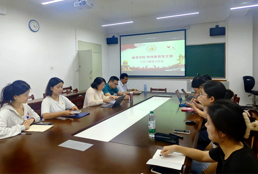 教育学院融媒体中心讯(通讯员 徐蕾)为深入学习习近平总书记关于全面加强党的纪律建设的重要论述,扎实开展党纪学习教育,教育学院特殊教育党支部于6月28日在田家炳513B室开展六月份主题党日活动。特殊教育党支部全体党员参加,活动由特殊教育党支部书记彭兴蓬主持。