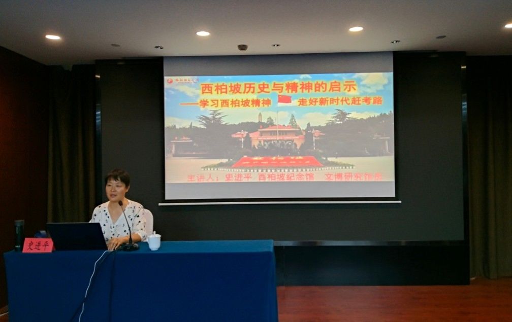 西柏坡纪念馆研究部副主任、研究员史进平以《西柏坡历史与精神的启示——学习西柏坡精神 走好新时代赶考路》为题作主旨报告,通过大量史料图片,从“审视内心,不忘初心”、“系统认识西柏坡”、“西柏坡时期的历史贡献”、“学习西柏坡精神,牢记使命”、“不忘初心:西柏坡精神的传承” 等方面深入阐述了中共中央选址西柏坡、部署指挥战略决战取得解放战争决定性胜利、召开中共七届二中全会的重大历史贡献,激励大家要审视初心、不忘初心,深刻感悟西柏坡精神内涵,在新时代的 “赶考” 路上奋勇前行。