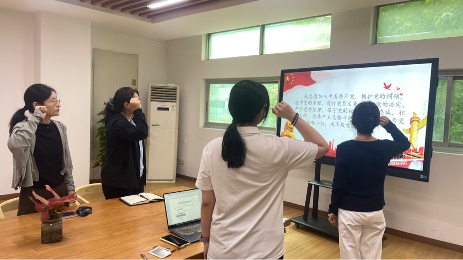 活动伊始,阿比代·阿布都加帕尔同志带领各位党员重温入党誓词,回顾入党初心。袁维同志和叶柔妘同志分别通报教师和学生党员的党费交纳情况。紧接着,叶柔妘同志带领大家诵读党章。