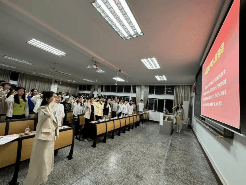 本次培训班班长、教育学院王思琪同学作为学员代表发言。她代表全体预备党员向党组织和各位领导、老师承诺,将在培训班中以“归零”心态潜心学习,铸魂强基;以“赶考”姿态严守纪律,砺行致远;以“践履”精神求知力行,锤炼担当。