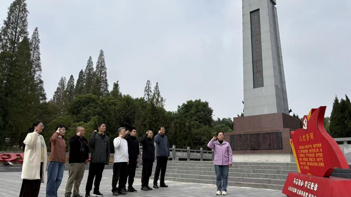 活动当日,全体党员前往红军街进行参观学习。在讲解员的细致引导下,党员们认真观摩了馆内陈列的珍贵文物、历史照片和文献资料。从湘鄂西革命根据地的创建历程,到革命先辈引领军民开展武装斗争、建立苏维埃政权的英勇事迹;从根据地军民无畏艰险支援前线的奋斗景象,到革命先烈为理想信念英勇牺牲的感人史实…一幅幅鲜活的画面、一段段厚重的历史,让在场的每一位党员都深受触动。随后,全体党员于湘鄂西苏区瞿家湾革命烈士纪念碑前重温入党誓词,“我志愿加入中国共产党,拥护党的纲领,遵守党的章程…”,铿锵有力的誓言回荡在革命旧址上空,不仅是对革命先辈的深切缅怀,更是对初心使命的再次叩问,进一步强化了党员干部的身份意识、责任意识和宗旨意识。