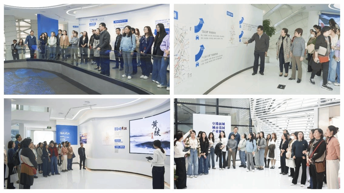 活动首站,全体师生代表乘车抵达空港新城展示馆,华中师范大学盘龙城校区建设指挥部综合管理部副部长孙焱热情接待并为大家作了详细讲解。据介绍,华中师范大学盘龙城校区作为学校未来发展的战略支点,与桂子山南湖校区之间形成“统一规划、错位布局、优势互补、整体发展”格局,聚焦“新师范、新交叉、新工科、大健康、普职衔接、国际联合”六大领域,重点布局人工智能、集成电路、生命健康、生物育种、绿色农药、脑科学、新材料等国家战略急需和新兴领域学科,着力打造“未来校园、智慧校园、生态校园、人文校园”四位一体的高等教育示范区。新校区环境优美,周围湖泊环绕,交通便利,区位优势显著,周边商业配套与住宅项目也正稳步推进,未来规划建设从幼儿园到中学的完整教育体系,真正实现宜居宜学的育人环境。全体党员登上空港新城创智园区·创智文化园楼顶,俯瞰新校区全景,直观感受新校区的建设新貌,大家对学校未来的发展充满信心与期待。