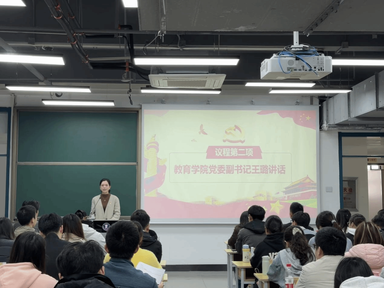 教育学院党委副书记王璐作开班动员讲话。王璐着重强调发展对象培训对于个人成长与发展的重大意义,希望学员们进一步明确党员的权利与义务,端正入党动机,增强党性修养,为早日成为一名合格的共产党员打下坚实的思想和理论基础。她向学员们提出四点要求:第一,要深化认识,端正态度,充分理解培训重要意义;第二,要潜心学习,筑牢根基,着力提升政治理论素养;第三,要联系实际,学以致用,自觉锤炼自身党性修养;第四要严守纪律,服从管理,确保培训取得扎实成效。