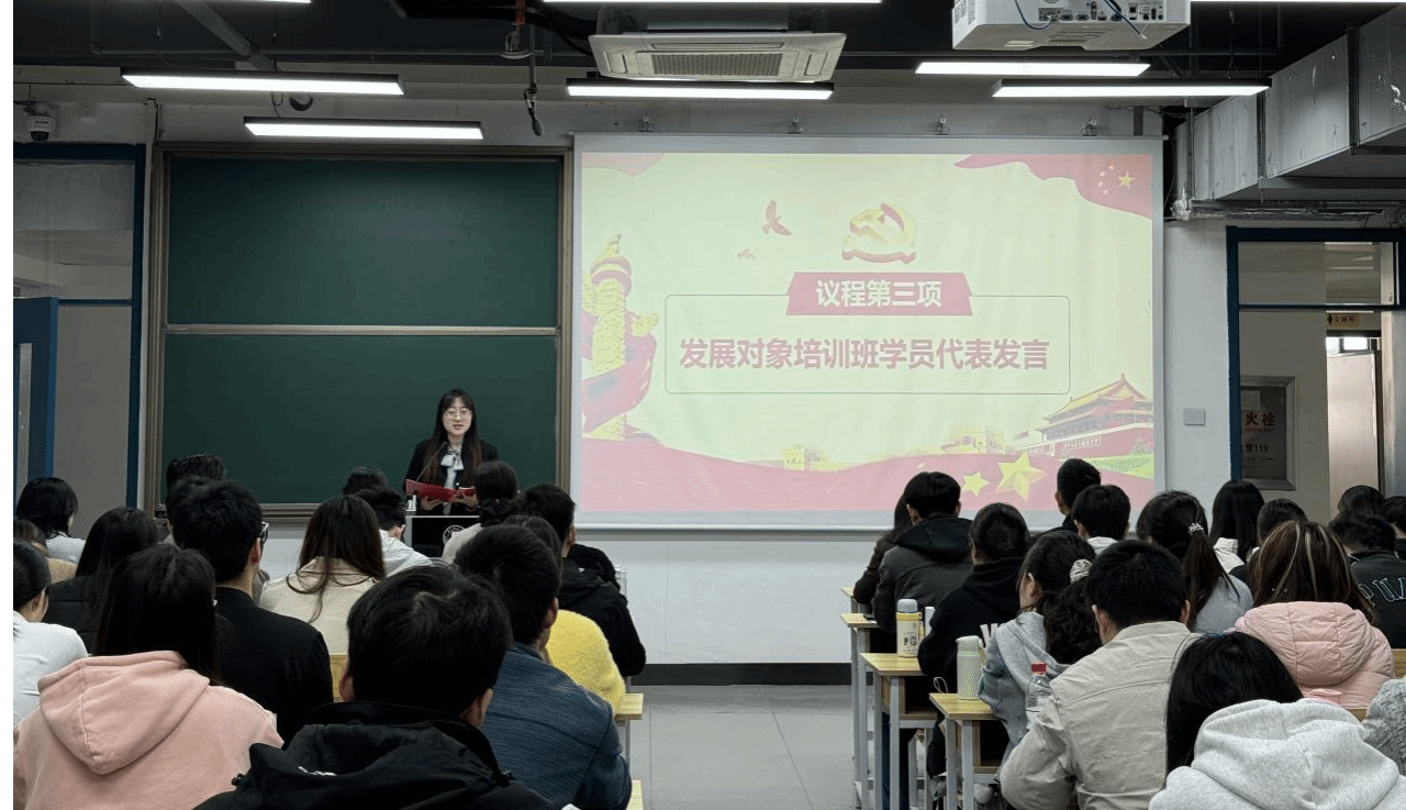 教育学院2023级本科生白岩作为学员代表发言。她代表全体发展对象向党组织和各位领导、老师承诺,将在向党组织靠拢的征程中,从以下三个方面锤炼党性修养:一是知行合一,筑牢信仰根基;二是服务奉献,践行初心使命;三是自我革命,永葆先进本色。