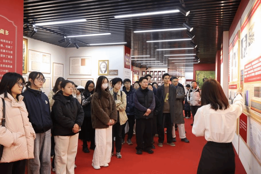 两院师生在充分开展了理论研学之后,进一步开展实地学习,共同前往文科综合楼参观“信仰之光——马克思主义文献典藏展”,在珍贵文献中感悟马克思主义真理力量,进一步夯实理论武装,筑牢信仰根基。