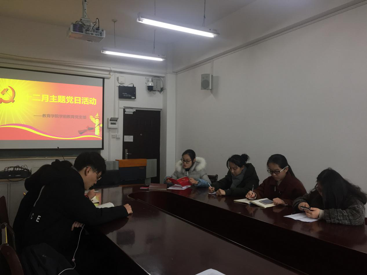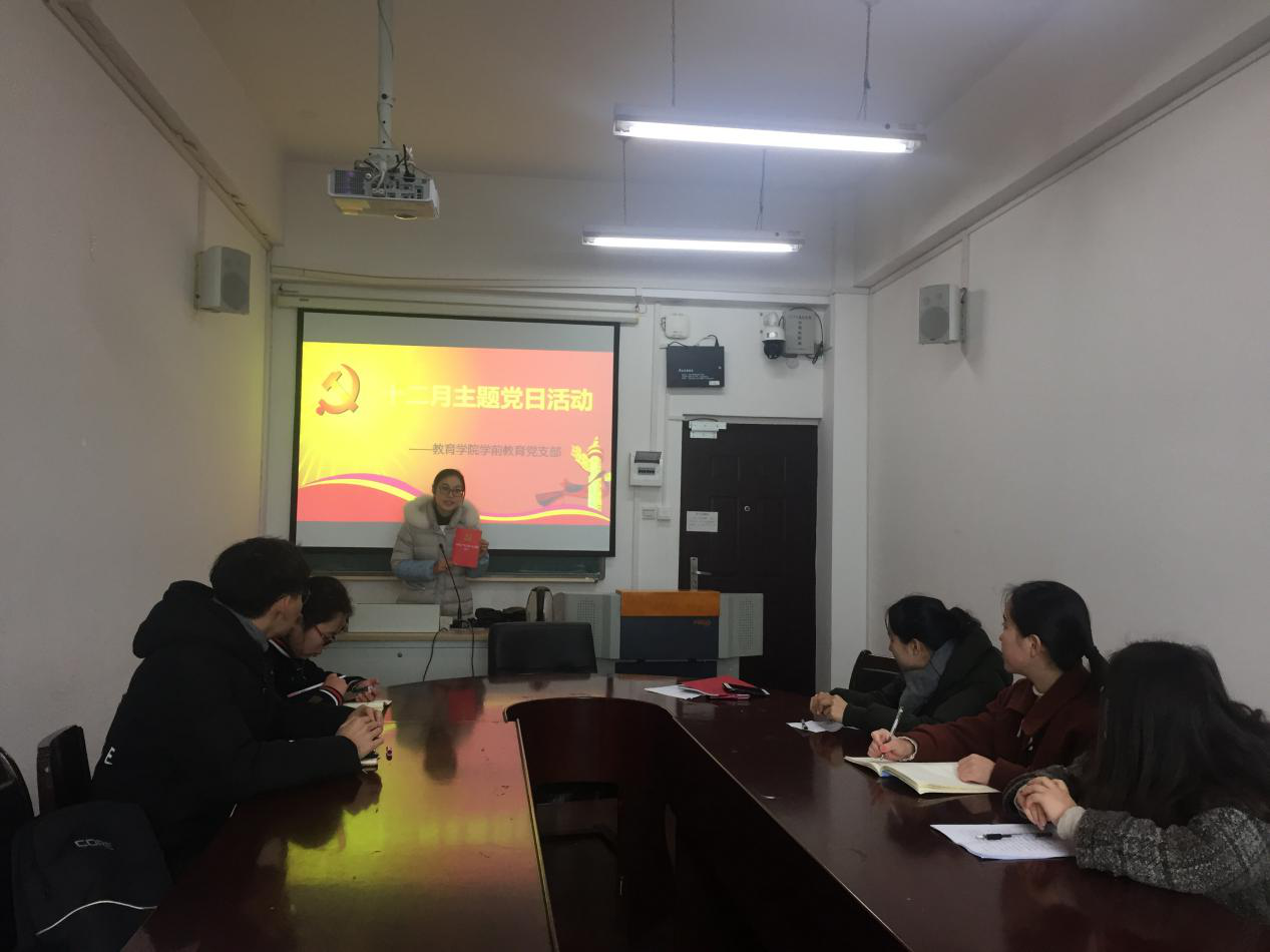 (通讯员:王珊琪)2018年12月28日中午12点,我院本科学前教育党支部在田家炳1003教室开展了十二月主题党日活动。本次活动由党支部书记王诗薇主持。