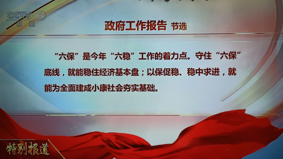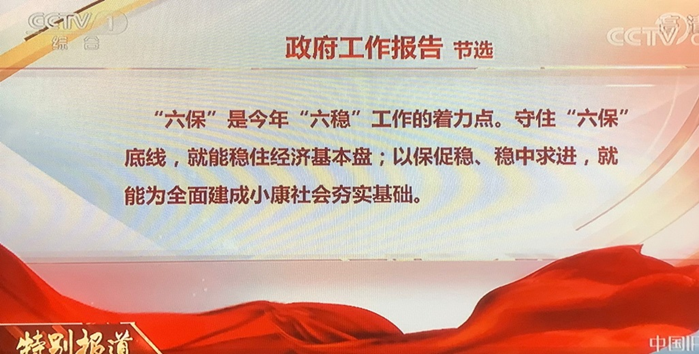 李总理强调,在这些总体目标中,没有提出全年经济增速具体目标,主要因为全球疫情和经贸形势不确定性很大,我国发展面临一些难以预料的影响因素。这样做,有利于引导各方面集中精力抓好“六稳”、“六保”。因此,“六保”是今年“六稳”工作的着力点。守住“六保”底线,就能稳住经济基本盘;以保促稳、稳中求进,就能为全面建成小康社会夯实基础。