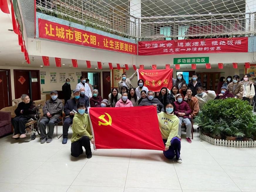 教育学院融媒体中心讯(通讯员 周治燕 董萍)为庆祝中国共产党建党100周年,弘扬中华民族传统文化,传递尊老敬老社会共识,增强支部内志愿服务精神,教育学院硕研1902党支部在支部书记张凡稷同志的领导下,15位党员、预备党员及积极分子组成了志愿团队,于3月20日来到武汉中原医院养老院开展爱心敬老活动。