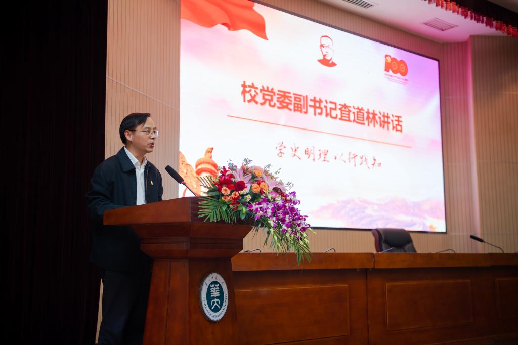 查道林强调,开展党史学习教育,是党中央在党的百年历史新起点、带领全党全国投身“两个一百年”奋斗目标的历史节点做出的重大决策,学校党委按照党中央、教育部党组和湖北省委的工作要求,结合我校的实际情况,成立了党史学习教育工作领导小组,召开动员部署大会、学习教育推进会,压紧压实责任,着力推进学校各级党组织、全校师生开展党史学习教育,营造人人学党史、悟思想、办实事、开新局的良好氛围。
