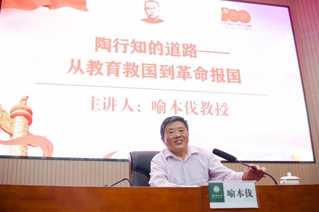 教育学院退休教师喻本伐教授以“陶行知的道路——从教育救国到革命报国”为主题向与会师生党员讲述了陶行知一生中致力于建设我国教育事业、推进教育现代化的开创性贡献,进行了一场感人至深、催人奋进的主题思政课。