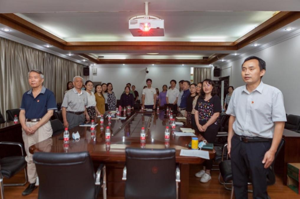 会议伊始,教工三支部书记雷江华带领全体与会人员奏唱国歌,重温入党誓词。