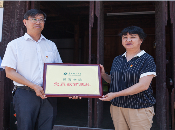 在中国共产党成立一百周年之际,在党史学习教育推向深入阶段之时,华中师范大学教育学院师生来到具有优秀革命传统的潜江熊口镇红军街红二军团部革命旧址群,进行“传承红色基因 庚续奋斗精神”主题党日学习教育暨党史教育实践基地挂牌活动。学院党委书记李玲同志参加教工第二党支部主题党日活动。