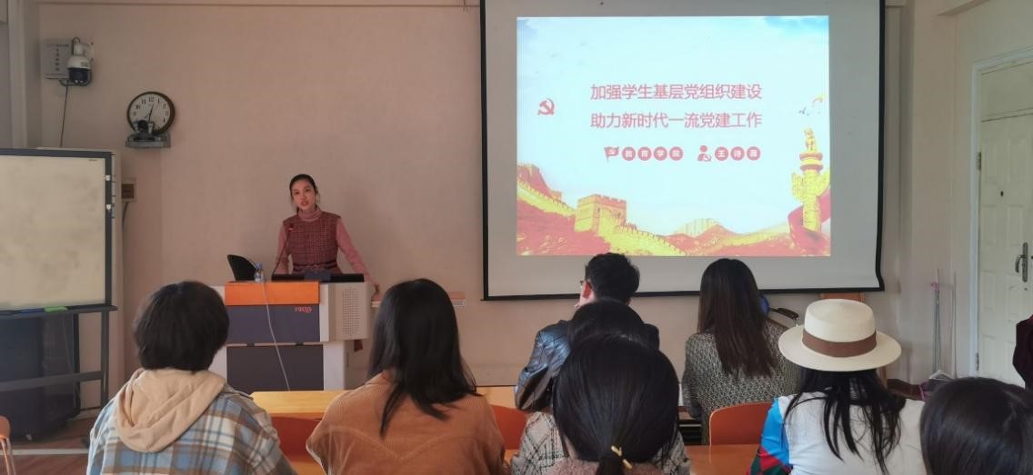 然后,王诗薇同志结合中共中央《中国共产党普通高等学校基层组织工作条例》,讲述了“如何加强学生基层党组织建设”,明确学生党支部的主要职责,提出加强学生基层党组织建设的主要做法:一是完善组织体系,强化制度建设;二是优化教育管理,加强宣传引导;三是创建党建品牌,发挥模范带头作用。