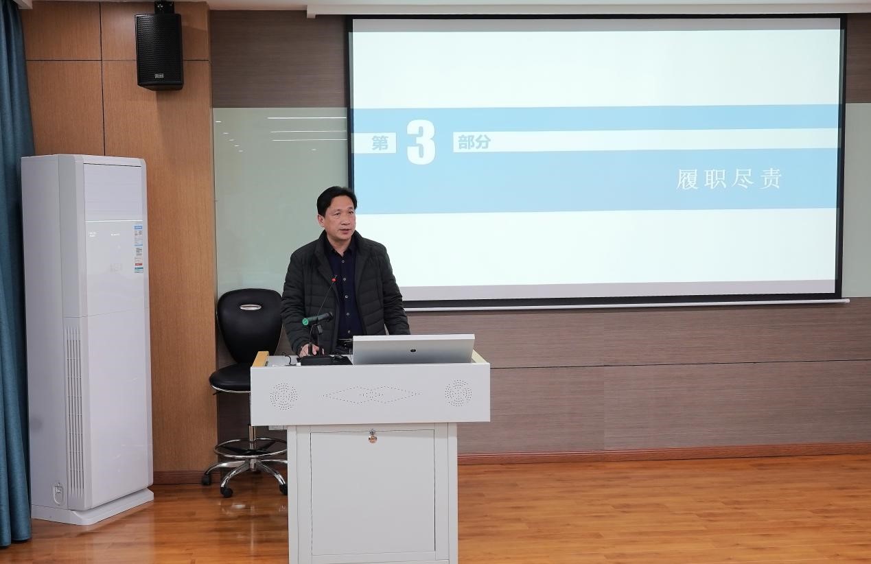 院长、党委副书记雷万鹏从政治学习、廉政自律、履职尽责和教学科研四个方面作述职报告。他围绕人才培养、科学研究、学科建设、社会服务、文化传承、国际化交流合作六个方面,详细汇报了尽责履职的情况,最后对存在的问题与不足进行深入剖析,并进一步提出了未来的努力方向。