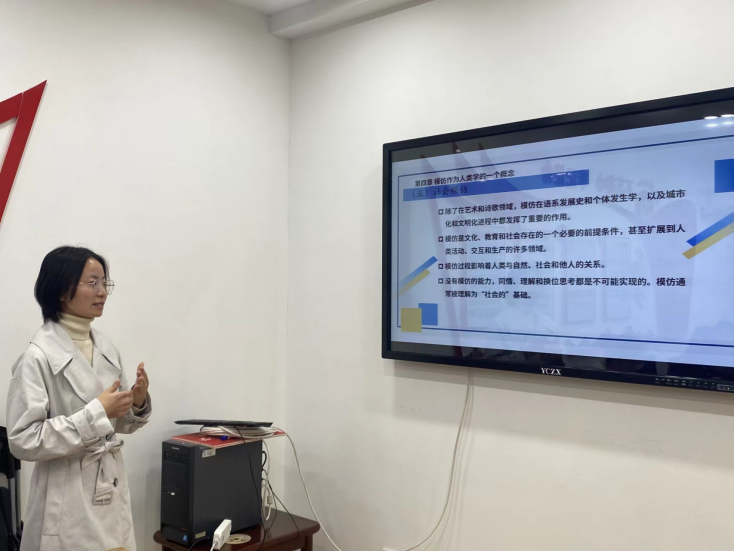 第四位分享者薛贤茹同学分享的是《教育人类学》第三章的第五部分、第四章和第五章。第三章的第五部分主要是写纪律社会:工作的缺失与扩张。第四章主要提到模仿作为人类学的一个概念。模仿是文化、教育和社会存在的一个必要的前提条件,甚至扩展到人类活动、交互和生产的许多领域。第五章主要写教育中的模仿。模仿最初被应用于教育,出现在柏拉图《理想国》第三卷中。模仿过程在教育和社会文明中扮演了重要角色。