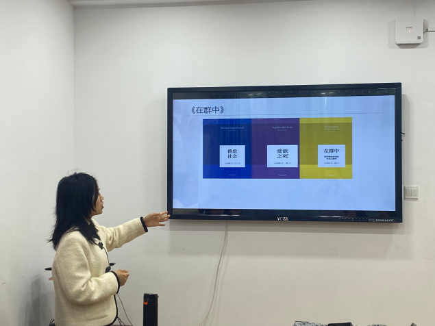 第一位分享者朱琰同学分享的是《在群中 数字媒体时代的大众心理学》。作者韩炳哲站在批判的角度揭示数字时代的一些现象,一针见血地刻画了一些数字时代的典型现象,如网络暴力、信息倦怠等,通读全文不难发现作者很擅长用旧有的哲学思想来映射现代社会的新问题。书中提到的观点现象给了我们很好的警示,让身处现代的我们重新意识到了我们身处而不自知的现象。