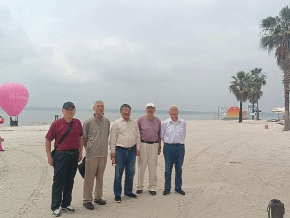 上午,一行人漫步蜜泉湖银沙滩。春风拂面,湖水如碧,细软的白沙在阳光下闪烁着珍珠般的光泽。老友们或沿湖赏柳,看新燕掠过如镜湖面;或闲坐凉亭,回忆三尺讲台上的青春岁月。几位童心未泯的老师在沙滩上写下“春风化雨”四字,浪花轻涌,将这份教育初心永远镌刻在蜜泉湖畔。