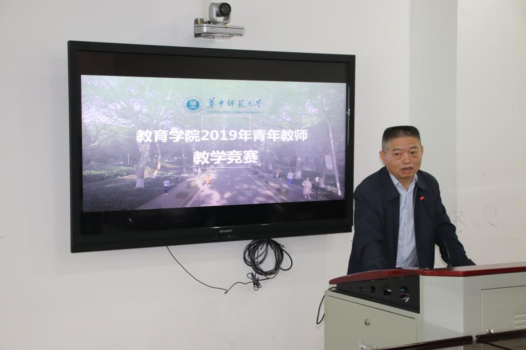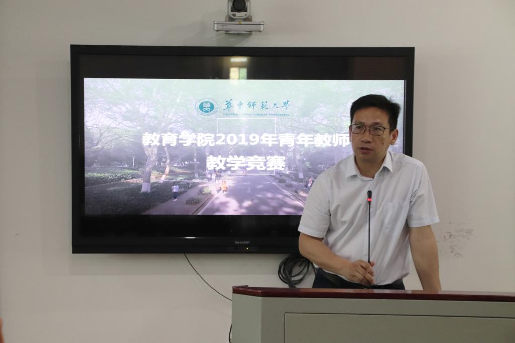 教育学院宣传中心讯(通讯员:钱隽至 李琪琪 摄影:张莉 张萌 编辑:王建梁 张萌)5月11日上午,由我院工会、教学办主办的2019年青年教师教学竞赛在田家炳教育大楼601室举行,校工会主席周东明莅临指导,我院党委书记李玲、院长雷万鹏、副院长蔡迎旗、副院长申国昌、“明德教师奖”得主余子侠、校院两级督导员余学峰、湖北省名师工作室主持人陈佑清、特殊教育系主任雷江华、2016年湖北省第五届青年教师教学竞赛一等奖获得者田友谊等担任评委,12名青年教师参赛,我院工会主席王建梁主持此次竞赛。