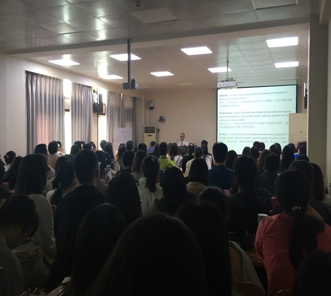 在讲授环节里,教授对教师教育研究的社会、文化与历史背景进行了阐释,具体介绍了教师教育在英格兰的发展历史。同时,Viv 教授对教师教育所面临的挑战做了深入分析,如理论、实践的二元划分以及学习者和教师的流动性给教师教育带来的挑战等等。Professor Viv Ellis教我们懂得,做好教师工作是一项颇具难度的挑战,而教师教育研究更具挑战性。讲授环节的最后,Viv教授对下节课将要讲授的关于维果茨基的理论进行了简要介绍。