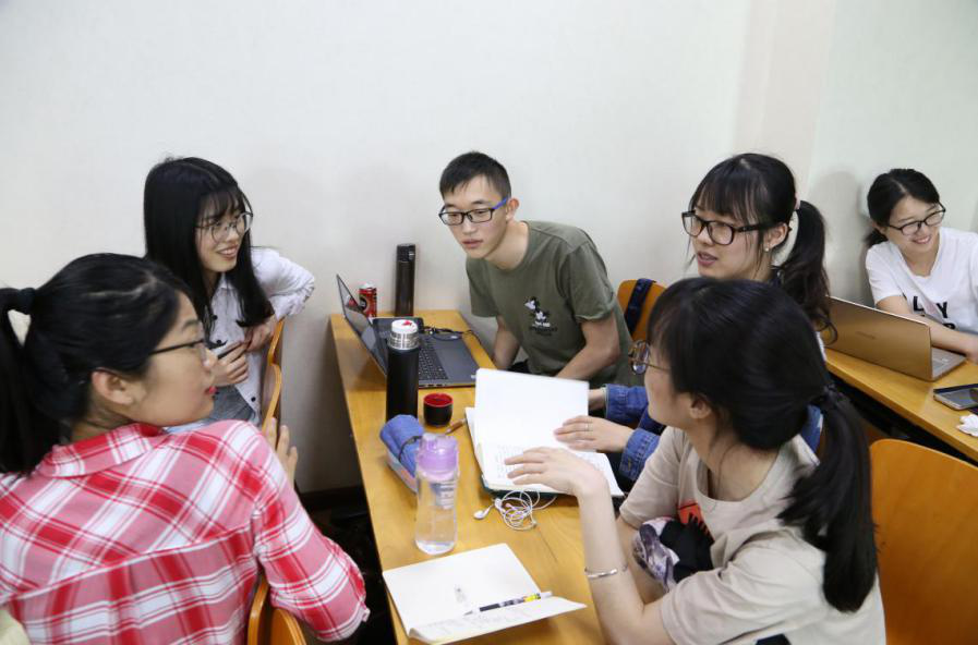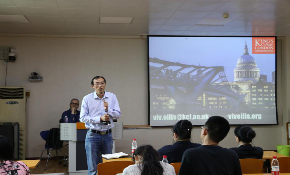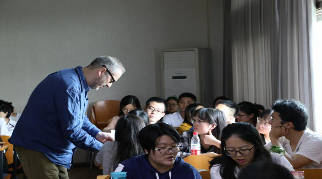 在讨论过程中,Ellis教授深入到同学当中,倾听大家讨论的内容,回答大家都疑惑并提出自己的看法和建议,课堂气氛十分活跃。讨论过后,Ellis教授邀请2017级硕士研究生郝建凯同学向大家分享了自己的观点,并对他的观点做出了高度评价。讨论过后,教授让同学们自由提问,并耐心细致地回答了同学们的问题。