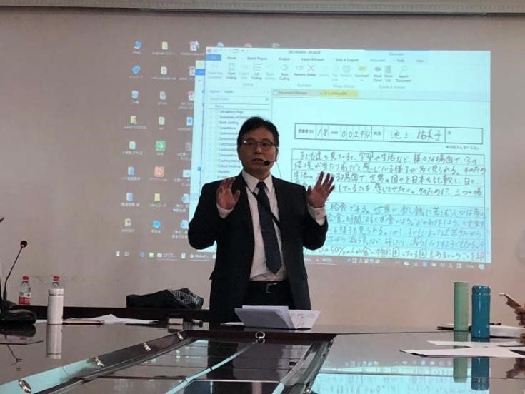 本次课程以“教育研究方法”为主题。首先,吉田教授关于如何在学术研究中快速进行文献处理这一问题,向同学们详细介绍了WOS、ENDNOTE、QDA等研究分析软件应用。为了使大家更好理解,吉田教授展示了相关软件的应用过程。随后,吉田教授讲到实践报告中论证部分时,反复强调英文论文陈述时态的重要性。在理论部分,吉田教授主要为大家讲解了何为归纳和演绎以及图尔敏的论证模式。同时,在文献综述部分,为大家概括了基本信息及国际常用学术引擎。最后,在讨论环节,吉田教授以及熊淳副教授深入浅出地为大家释疑。