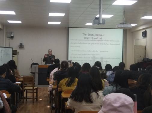 (通讯员:韩雪莹 摄影:董玲雪 编辑:吴佳妮)2018年12月17日下午,教育学院的研究生高水平国际化课程《课程范式、视角和可能性》在田家炳楼502教室开课。该课程由毛齐明副教授和陈佑清教师共同申报,由来自美国的著名课程论专家William H.Schubert教授担任主讲教师。本院一百多位研究生参加了本次课程学习,陈佑清、毛齐明、高巍和邹义欢等老师出席了当天的课堂。本次课堂讲座由陈佑清教授主持,何明芳教授进行了翻译和补充讲解。