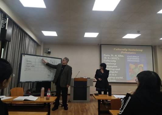 (通讯:张静玉 摄影:董玲雪 编辑:陈棋)2018年12月19日下午,研究生高水平国际化课程《跨文化的叙事研究》第二讲在田家炳楼502开课。本次课以“Cross-Cultural and Multicultural Perspectives of Teacher Development and Teacher Education”为主题,由美国佐治亚南方大学教育学院教授Mingfang He主讲,我院毛齐明副教授主持。我院欧阳光华、高巍等老师及百余名研究生参与了课堂学习与交流。