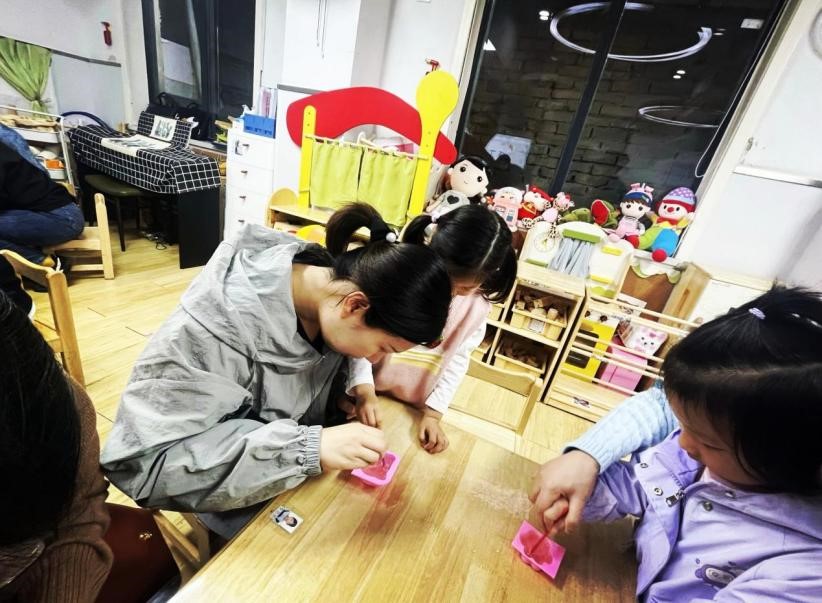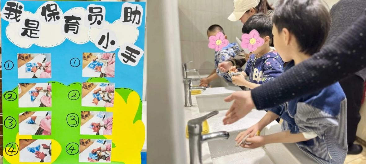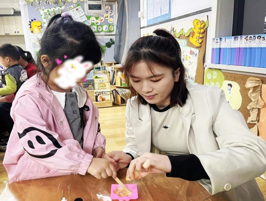 教育学院融媒体中心讯(通讯员 张别韵 蒋思绪 何小蝶) 勤劳耕春常在,劳动创幸福。携一缕春日的阳光,踏着童年的步伐,迎着五月浸满劳动与智慧汗水的风,六渡桥幼儿园实习小队的成员们与园所老师一起组织开展并参与了“小小打工人,一起趣劳动”的劳动节系列主题活动。与幼儿园的宝贝和家长朋友们一同度过了一个充满童趣与成长的劳动节。活动主要由“劳动集结令”的班级活动和“快乐打工记”的园所游园会活动组成。在“劳动集结令”的号召下,实习小队的成员们与小朋友和家长朋友们一同化身动手小达人,从手工制品到美食制作再到创意环保制造,共同播撒下爱劳动的种子。在“快乐打工记”的游园活动中,实习小队的成员们分别在各劳动岗位就位,带领“小打工人们”化身图书管理员、快递员、厨师、环卫工人等体验不同的劳动职业,共同致敬美好生活的缔造者!