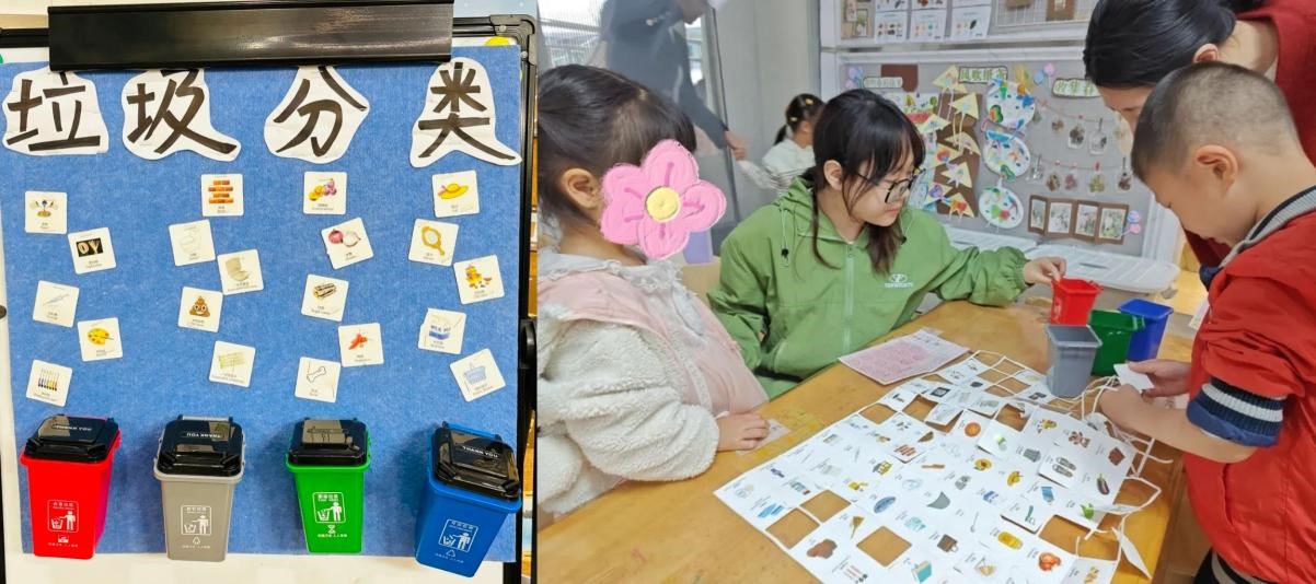 中一班在此次活动中承担任务是绘制雨伞。实习生何小蝶负责协助小朋友和家长们在透明雨伞上用马克笔画出可爱的图案,引导他们进行亲子合作,创作出独一无二的小雨伞。绘制结束后,她将这些充满童真童趣的雨伞送往图书室布展,将小朋友们的成果拍照记录,为他们留下难忘的美好回忆。