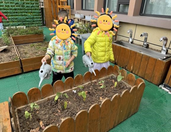 快来大二班的空中花园舱看看吧!整体采用绿地,蔬果种植(辣椒、草莓、樱桃、萝卜、茄子、薄荷)、花卉种植、木头、水源等自然素搭建,在有限的空间内最大限度的呈现自然生态。另外还为孩子们提供休息和填写观察记录的场所,以及玩游戏的凉亭,此凉亭有顶无墙,四面通透,开敞,不安装隔扇、木板,目的是为了让孩子们自由去探索与发现户外的精彩世界。