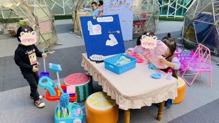 小四班会在每周三到育婴宝宝舱进行游戏。在这个游戏舱中,教师为幼儿创设了贴近日常生活环境的各种情境以及一系列的仿真道具,让幼儿可以更加身临其境地进行游戏。相比于各班级区角的娃娃家这里的情景更丰富,幼儿可以在家中照顾宝宝,也可以推着宝宝去外面散步,去餐厅吃饭、去超市购物……游戏中教师不会限制幼儿,幼儿可以自己选择角色与情景,在不同的情境中自由地扮演着自己喜欢的角色。他们可以是爸爸妈妈,可以是厨师,也可以是超市收银员。在不同的情境中他们根据自己的理解去演绎角色,创造性地表达自我,学会如何与他人交往。这个游戏让我发现了幼儿丰富的想象力与表现力,这也正是自主游戏的魅力。