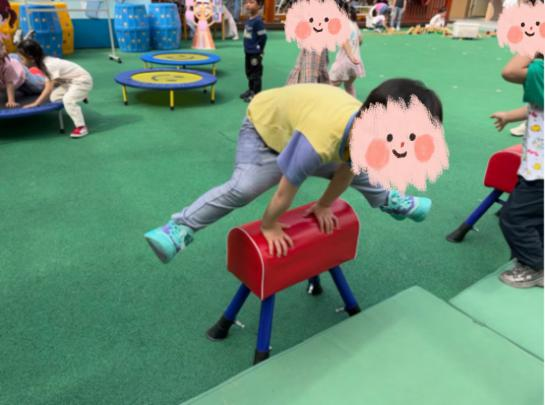 小一班组织的阳光欢乐谷活动是跳马,在活动开始的第一天,教师通过理论和实操相结合的方式,为孩子们游戏奠定了基础,通过这两个月对跳马进行不断的尝试和研究,孩子们在整个过程中逐渐的掌握了一些技巧,如:跳的要高一些、腿要分的开一些。小班孩子从一开始不敢尝试到勇往直前,经过不断尝试,变得越来越自信,跳马的这项技能也变得越来越熟练。