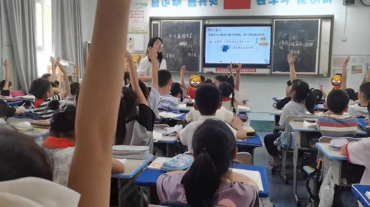 上课时,由于课文以大象和不同动物间的对话为主,因此我主要采取了角色扮演的策略,充分调动了同学们的上课积极性,同学们踊跃举手,让我成就感满满。