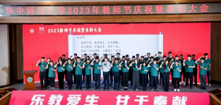 On 13th September, the 2023 Teachers' Day celebration and commendation conference of Central China Normal University was held in the lecture hall on the first floor of the Science Hall. All school leaders, recipients of important awards and talent projects (selected candidates), representatives of staff who have been teaching for thirty or forty years, retired teachers, representatives of newly hired teachers, and main leaders of each unit attended the meeting. The School of Education has set up a branch venue in the 909 Lecture Hall of Tian Jiabing Education Building, organizing the leadership team of the college, department heads, representatives of young teachers, and student backbone members of the Youth League Committee, Student Union, and Graduate Union to watch the conference. Retired teacher Dan Zhaobin, as a retired representative from the School of Education, came on stage to receive the certificate. Professor Guo Yuanxiang, Professor Chen Youqing, and Professor Lei Wanpeng, as important award recipients, took the stage to receive the award. Professor Guo Yuanxiang, as a national level talent, came on stage to receive the award. New teachers Meng Yu and Cheng Zhe came on stage to participate in the onboarding oath. Professor Guo Yuanxiang took the oath.