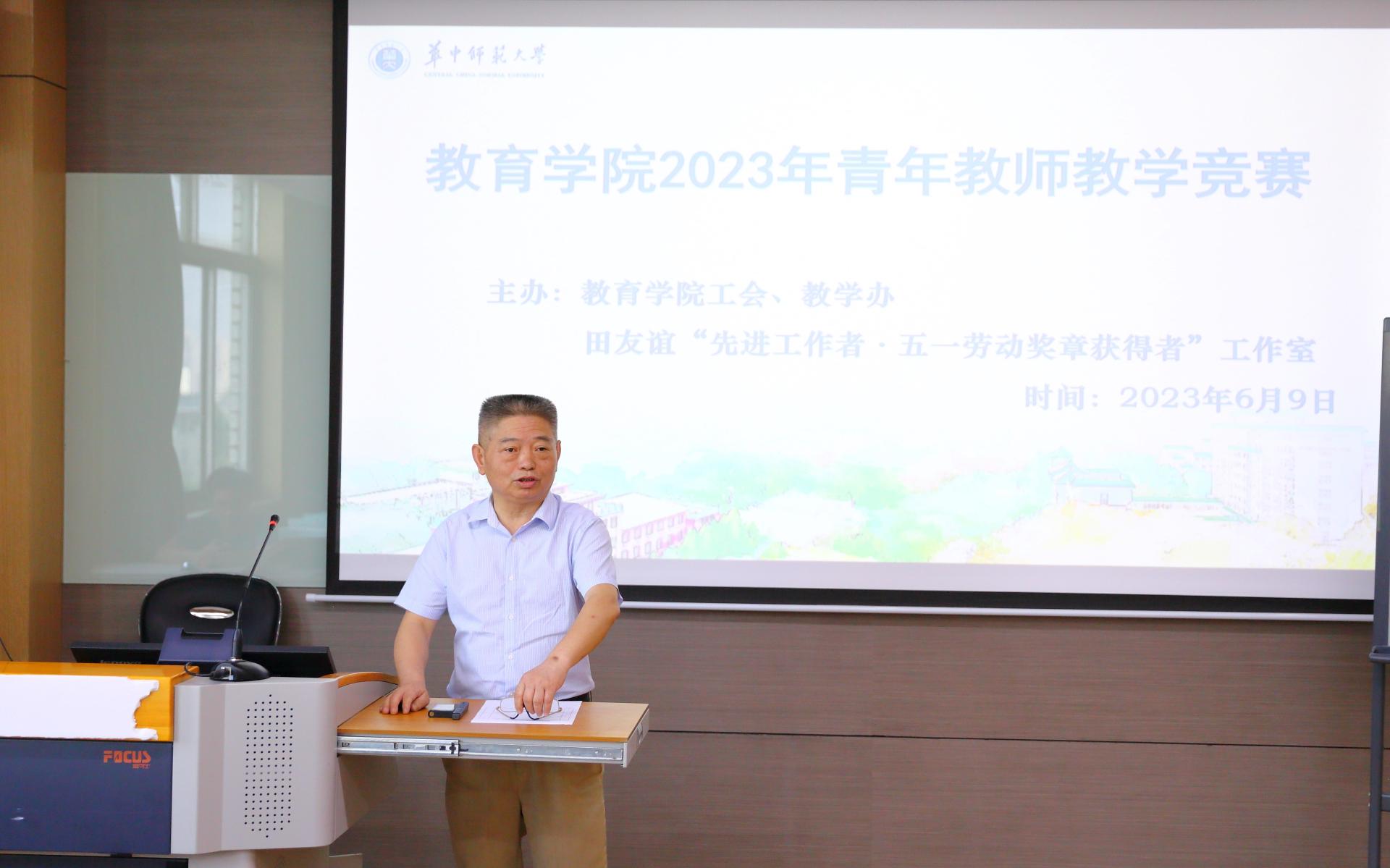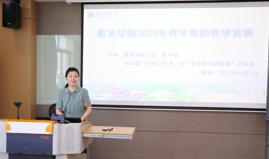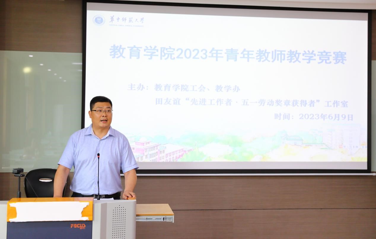 教育学院融媒体中心讯(通讯员 宫慧娜 刘小芳 高晓智)为了落实党的二十大精神,提高我院青年教师的教学能力和业务水平,学院2023年6月9日举办了教育学院2023年青年教师教学竞赛,邀请校级教学督导组组长骆启桂教授、化学学院副院长原弘教授、经济与工商管理学院副院长周维第教授、原校工会主席周东明教授、学校督导蔡迎旗教授、学院督导但武刚教授、学院副院长田友谊教授担任评委。本次竞赛由院工会、院教学办、田友谊“先进工作者·五一劳动奖章获得者”工作室主办,11名青年教师参赛,多位青年教师到场观摩学习,院工会主席王建梁教授主持。