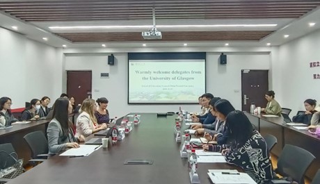 教育学院融媒体中心讯(通讯员 张怡玲 刘馨雨)11月9日下午,英国格拉斯哥大学教育学院学习与教学研究中心主任Joanna Wincenciak博士、Abigail Beer女士、国际交流合作项目专员Cynthia Yin女士一行三人来我院访问交流。教育学院副院长田友谊教授、教育学系主任程红艳教授、特殊教育系主任徐添喜副教授等教师与学生代表参会交流。会议在田家炳楼909学术报告厅举行,由徐添喜主持。