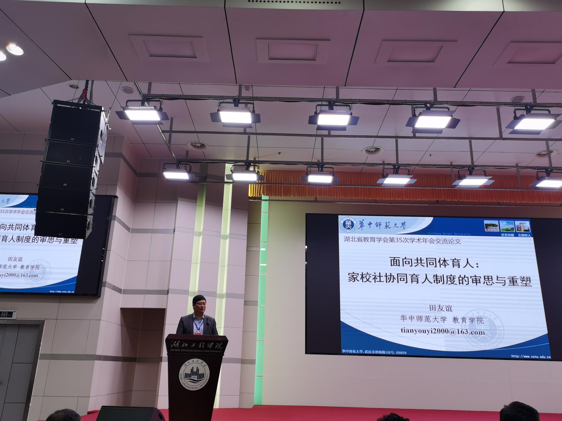 教育学院融媒体中心讯(通讯员 田友谊) 11月10日至12日,湖北省教育学会第35次学术年会在湖北工程学院隆重召开。本次大会由湖北省教育学会主办,湖北工程学院教育与心理学院承办。来自湖北省各市州教育学会、各专业委员会、教科研部门、师范院校、中小学校一线教师会员代表480余人参加会议,共同探讨“构建高质量教育体系背景下的家校社协同育人”。我院田友谊、戴伟芬等老师,以及研究生代表参会。