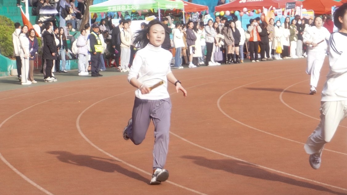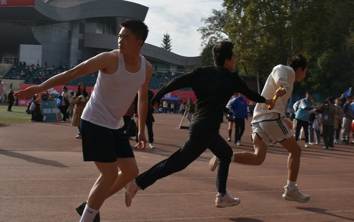 这项速度与协作兼具的接力比赛吸引了周围观众们的目光,展现出教育学院的运动员们出色的比赛技巧和强大的团队合作精神。赛场旁的教院学子为他们加油助威,他们的呐喊声为赛场增添了活力,也让运动员们倍感激情。