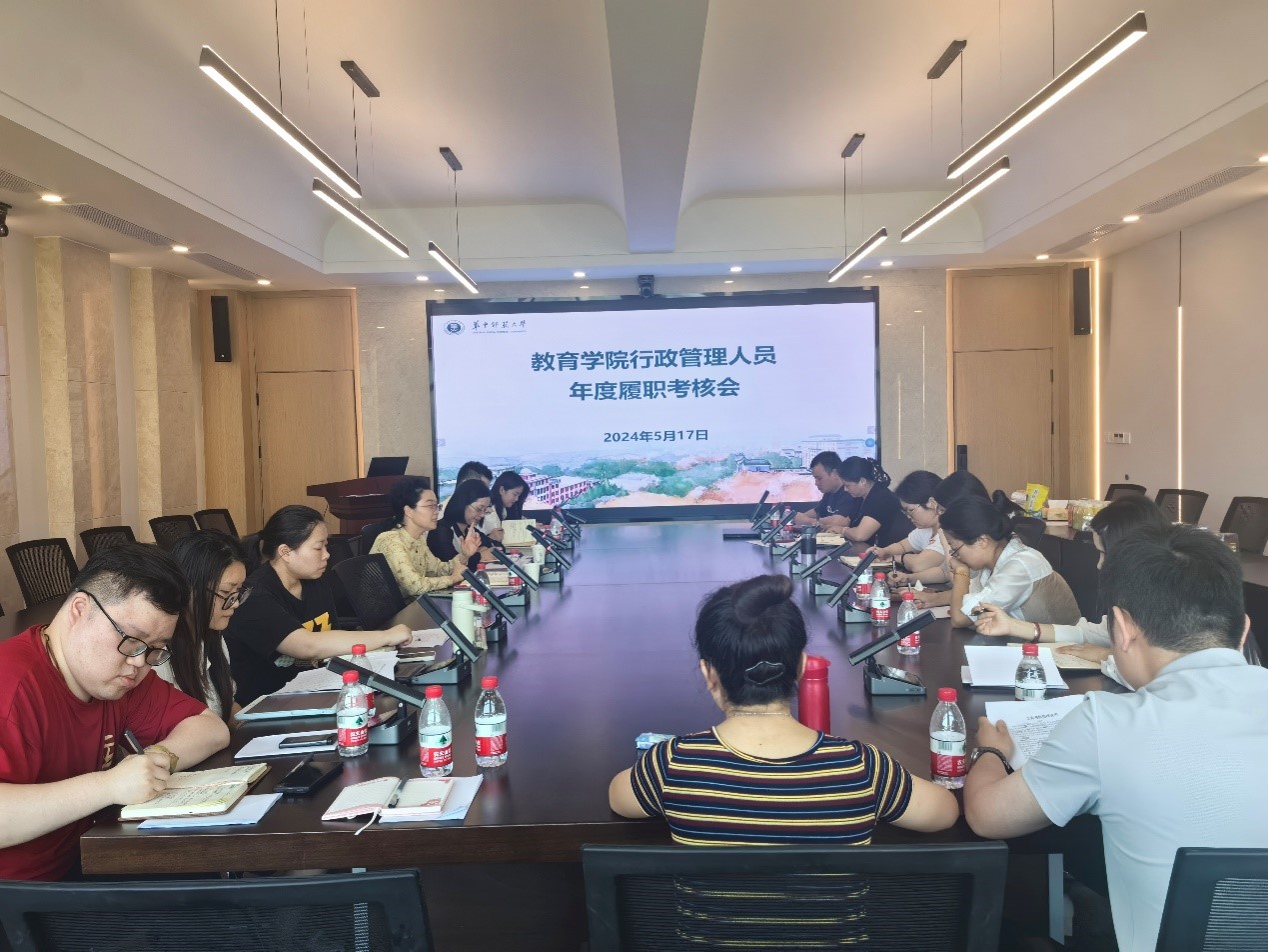 教育学院融媒体中心讯(通讯员 刘馨雨 詹思迪)2024年5月17日上午,我院在田家炳901学术报告厅召开管理服务人员2023年度履职考核会,院党委书记陈雪玲、党委副书记苏春艳出席,会议由院党政综合办公室主任覃娟主持,全体管理服务人员参加。