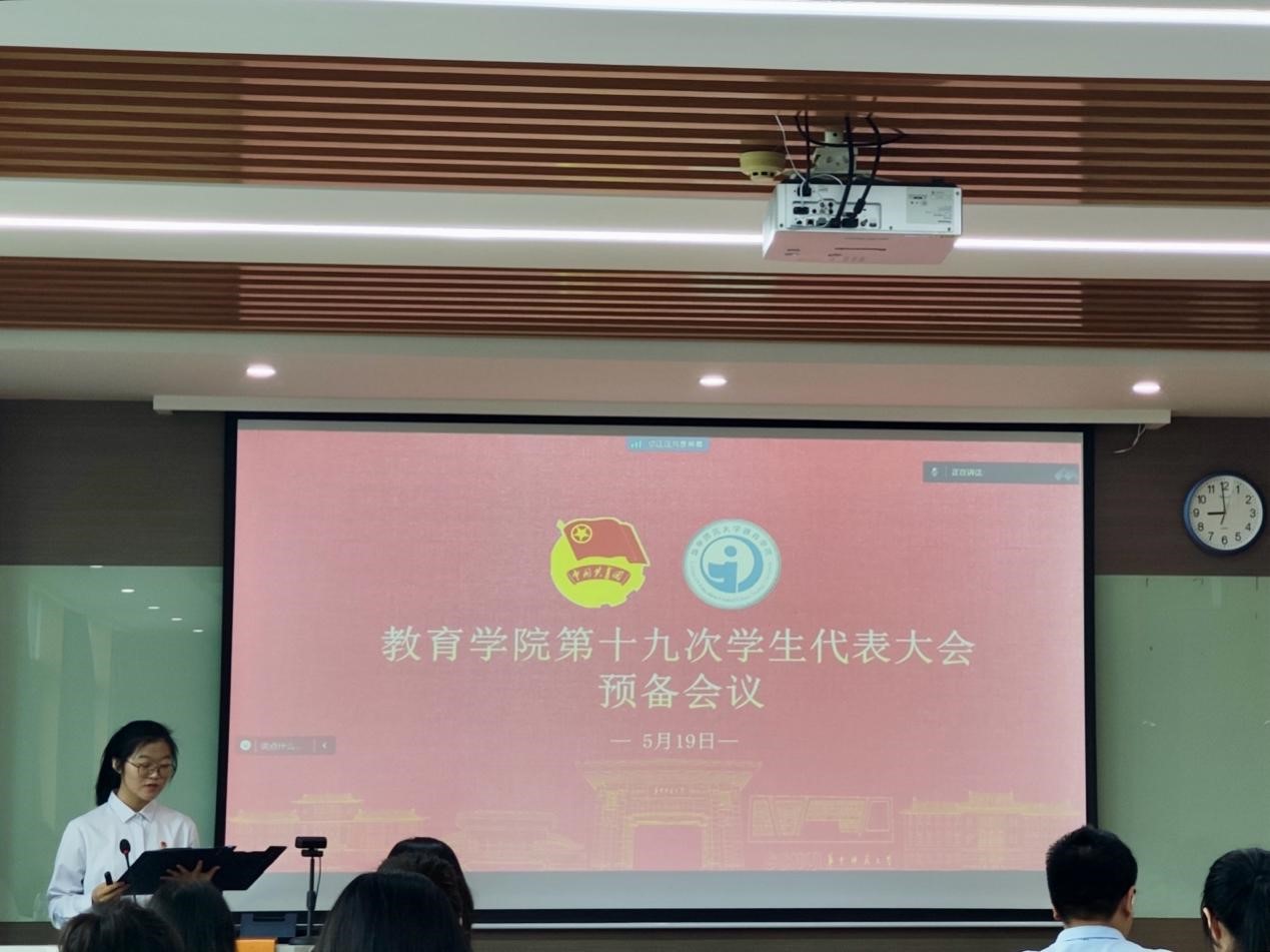 教育学院融媒体中心讯(通讯员 陈佳筠 杜涵超 赵梓名)为加强教育学院团委、学生会的组织力和服务力,增强团组织凝聚力,并顺利完成换届选举,教育学院第十九次学生代表大会预备会议于5月19日在田家炳教育书院905会议室顺利举行,并在502教室设分会场,线上同步观看。教育学院团委副书记刘雅欣、研究生辅导员张萌、本科生辅导员王利娜出席。教育学院第十八届学生会主席团成员张敬莹主持会议。