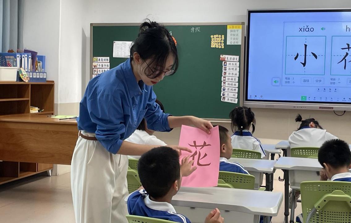 (图3:实习生蒋昕彤授课生活语文一年级下册《花草树木》)