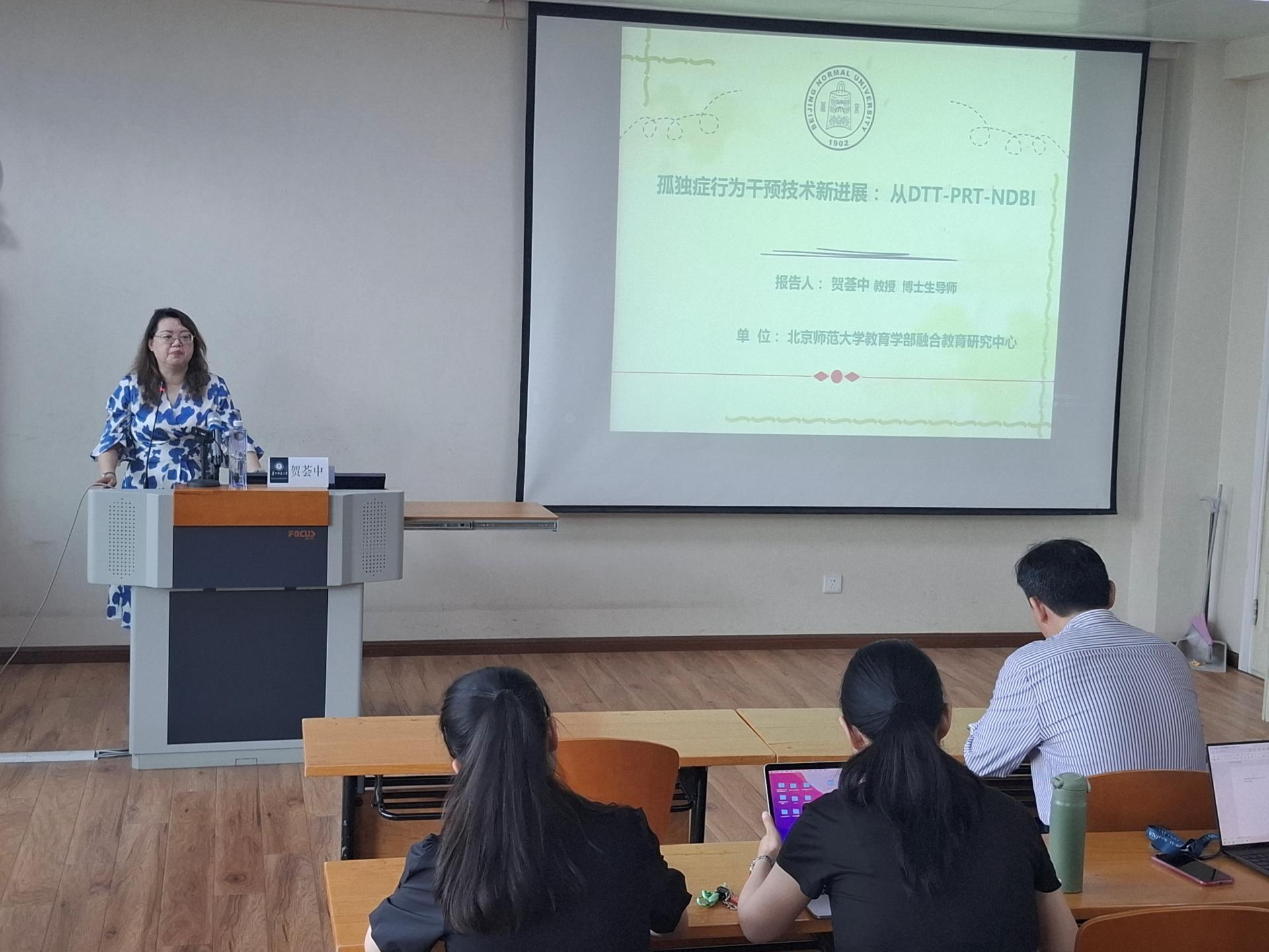 教育学院融媒体中心讯(通讯员 沙鹏)2024年5月26日上午,由北京师范大学教育学部融合教育研究中心主任,中国残疾人事业发展研究会常务理事、残疾人康复协会孤独症康复专业委员会副主任贺荟中教授为我院学子带来的《孤独症行为干预技术新进展:从DTT-PRT-NDBI》专题讲座于田家炳楼502室顺利举行。本次论坛由雷江华教授主持,教育学院特殊教育学系的师生参加。