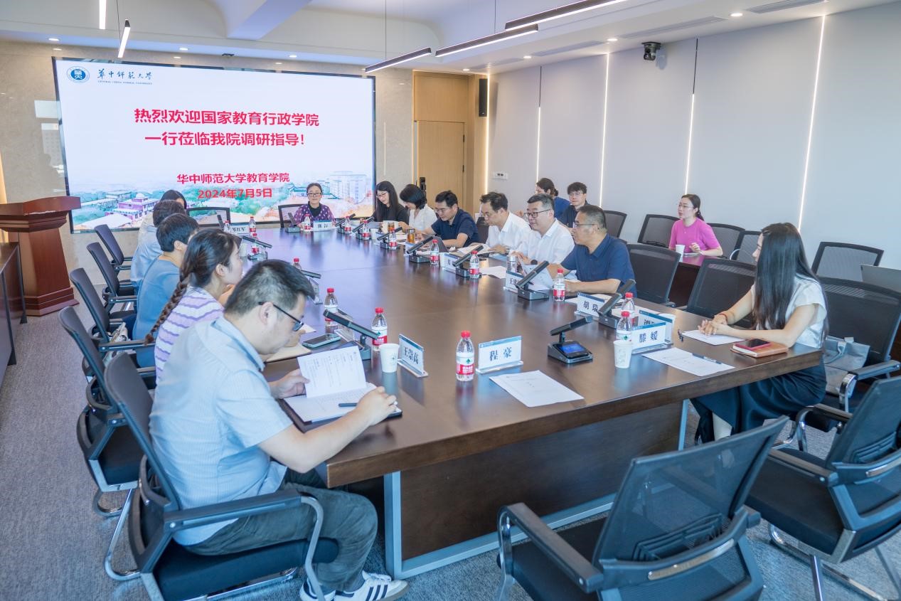 教育学院融媒体中心讯(通讯员 张宇 张芬) 2024年7月5日,国家教育行政学院专题调研座谈会在教育学院田家炳教育书院901会议室顺利举行。国家教育行政学院教育管理杂志社社长李改、《国家教育行政学院学报》编辑部副主任吴虑,华中师范大学教育学院副院长郑刚,郭元祥教授、岳伟教授、王建梁教授、戴伟芬教授、胡瑞教授、熊淳副教授、龚欣副教授、王鶄副教授、邹红军副教授、白颖颖讲师、滕媛讲师、孙冉讲师、王崇高讲师、程豪讲师,《教育研究与实验》编辑部常务副主编王学、主任谭颖芳,《教育与经济》编辑部副主编叶庆娜参加会议,座谈会由院工会主席王建梁主持。