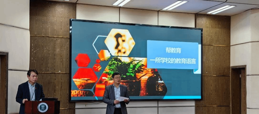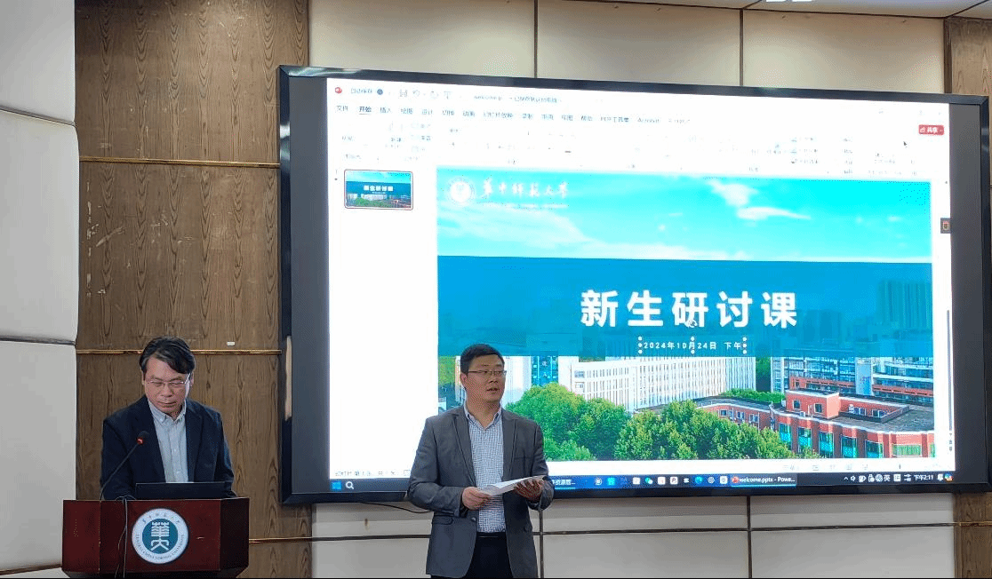 2024年10月24日星期四下午,教育学院《新生研讨课》于九号楼报告厅成功举办了外聘专家讲座。武汉光谷实验中学校长、特级教师、正高级教师、湖北省校长协会初中分会会长、省督学、荆楚教育名家、我校兼职研究生导师、《湖北教育》《新班主任》等教育期刊的专栏作者马国新校长受邀为同学们作了题为“寻找我们的教育语言”的专题讲座。田友谊教授、蔡迎旗教授以及教育学院24级全体本科新生参加了此次讲座,讲座由田友谊教授主持。