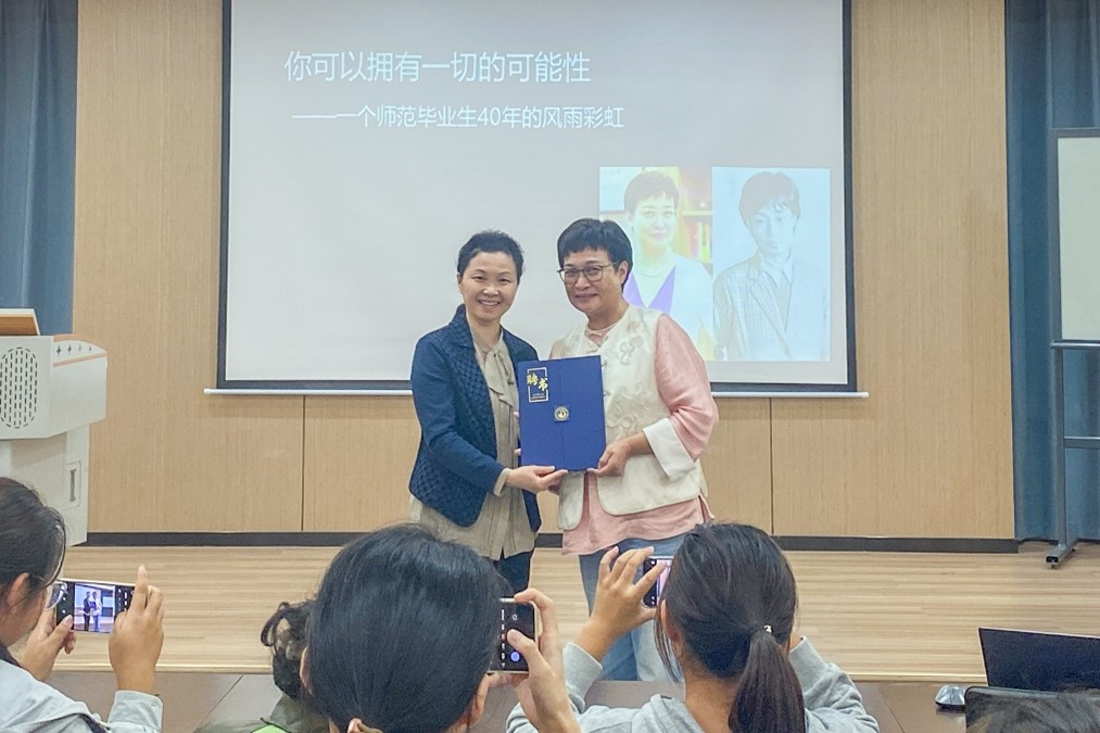 教育学院融媒体中心讯(通讯员 刘馨雨 詹思迪 郑炜君)10月30日,校友杨瑛应邀回母院参加“弘扬教育家精神系列活动”,并以“‘看见’满意的自己”“你可以拥有一切可能性”为主题分别与我院青年教师和本研在读学生作分享交流,活动由教育学院党委书记陈雪玲和党委副书记王璐主持。