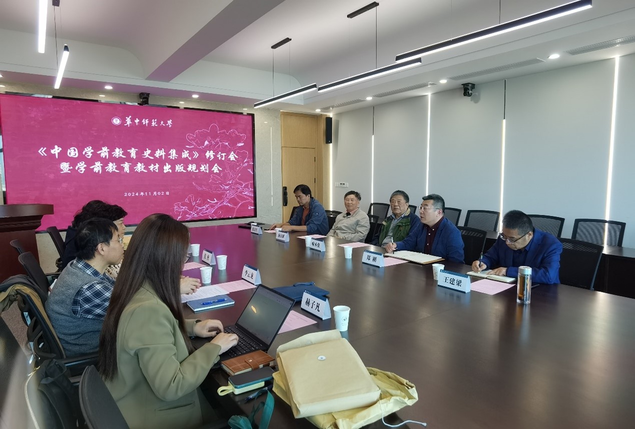 教育学院融媒体中心讯(通讯员 陈子祎)2024年11月2日15:00,《中国学前教育史料集成》修订会在田家炳教育书院901报告厅顺利举行。中国教育出版传媒集团质量中心主管编审李云龙、人民教育出版社学前教育编辑室主任焦艳、副主任刘峰峰、编辑赫子凡出席本次会议,我院喻本伐教授、杨汉麟教授、王建梁教授、郑刚教授和张汶军副研究员参加了本次会议,会议由王建梁教授主持。