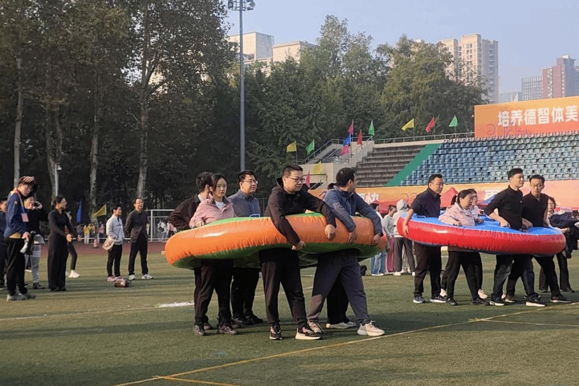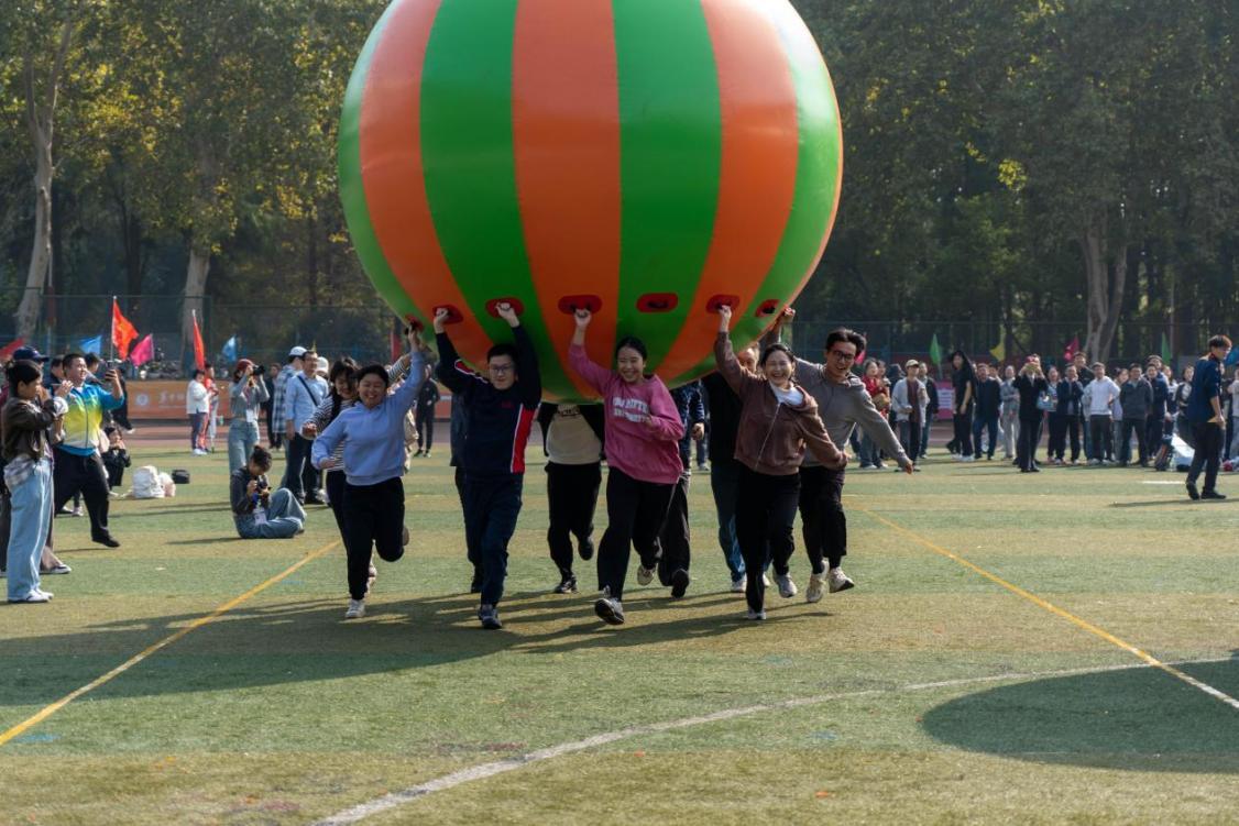 11月1日上午,教职工们在佑铭体育场中央趣味项目场地参与披萨战士项目。随着哨声响起,教育学院教职工代表队出发,秉持着“稳中求进”的策略,老师们通过口号来统一步调和节奏,零失误、连贯的完成了这项运动。